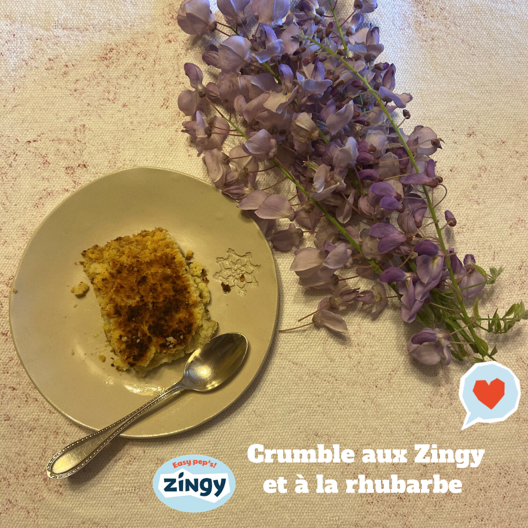 Un petit crumble aux Zingy et à la rhubarbe en dessert ça vous dit ? Aujourd’hui on découvre ensemble une nouvelle recette. Le crumble aux Zingy®️ et à la rhubarbe ! La pomme se marie particulièrement bien à la rhubarbe car elle permet de l’adoucir ! Puis ça fait plaisir de gouter un fruit que nous n’avons pas l’habitude de manger.