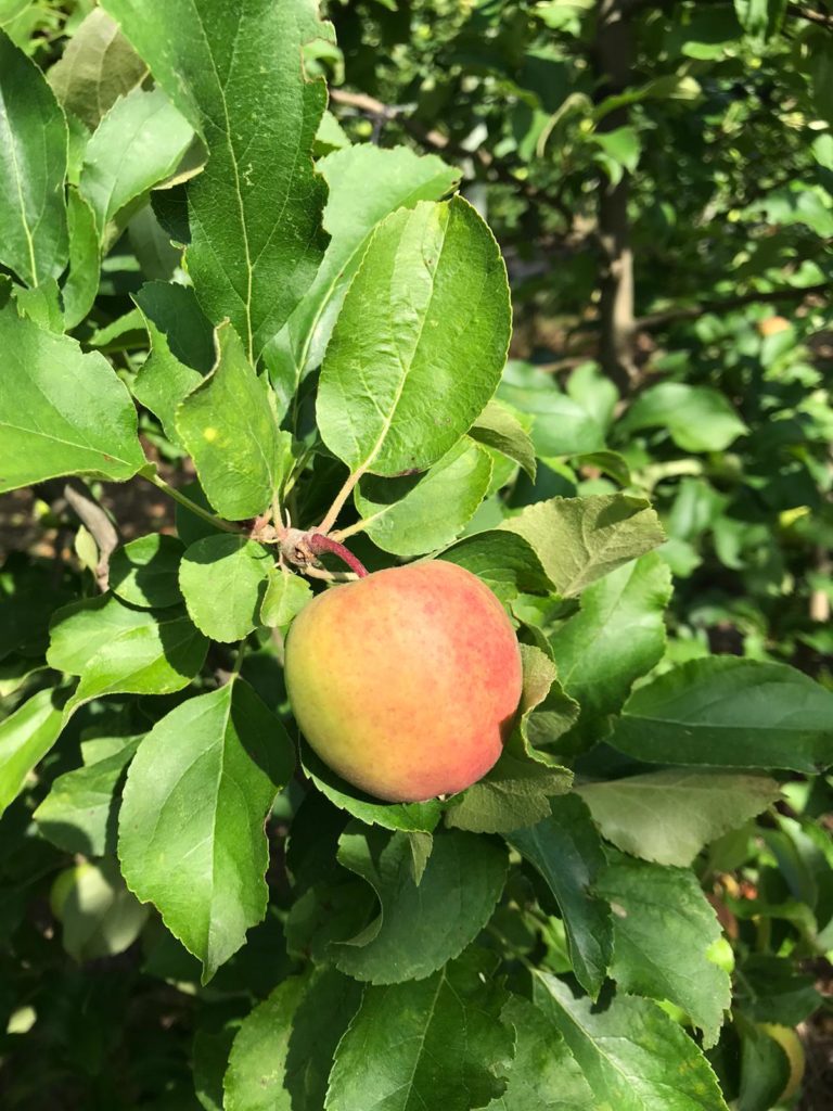 Les fruits font doucement leurs apparition, l’éclaircissage manuel a commencé fin mai pour se terminer début juin. L’éclaircissage manuel est une étape importante pour le développement des fruits. Cela consiste à enlever les fruits afin de ne laisse que deux fruits par bouquets. Cela évite une surcharge des branches et permet aussi un meilleur grossissement des fruits.