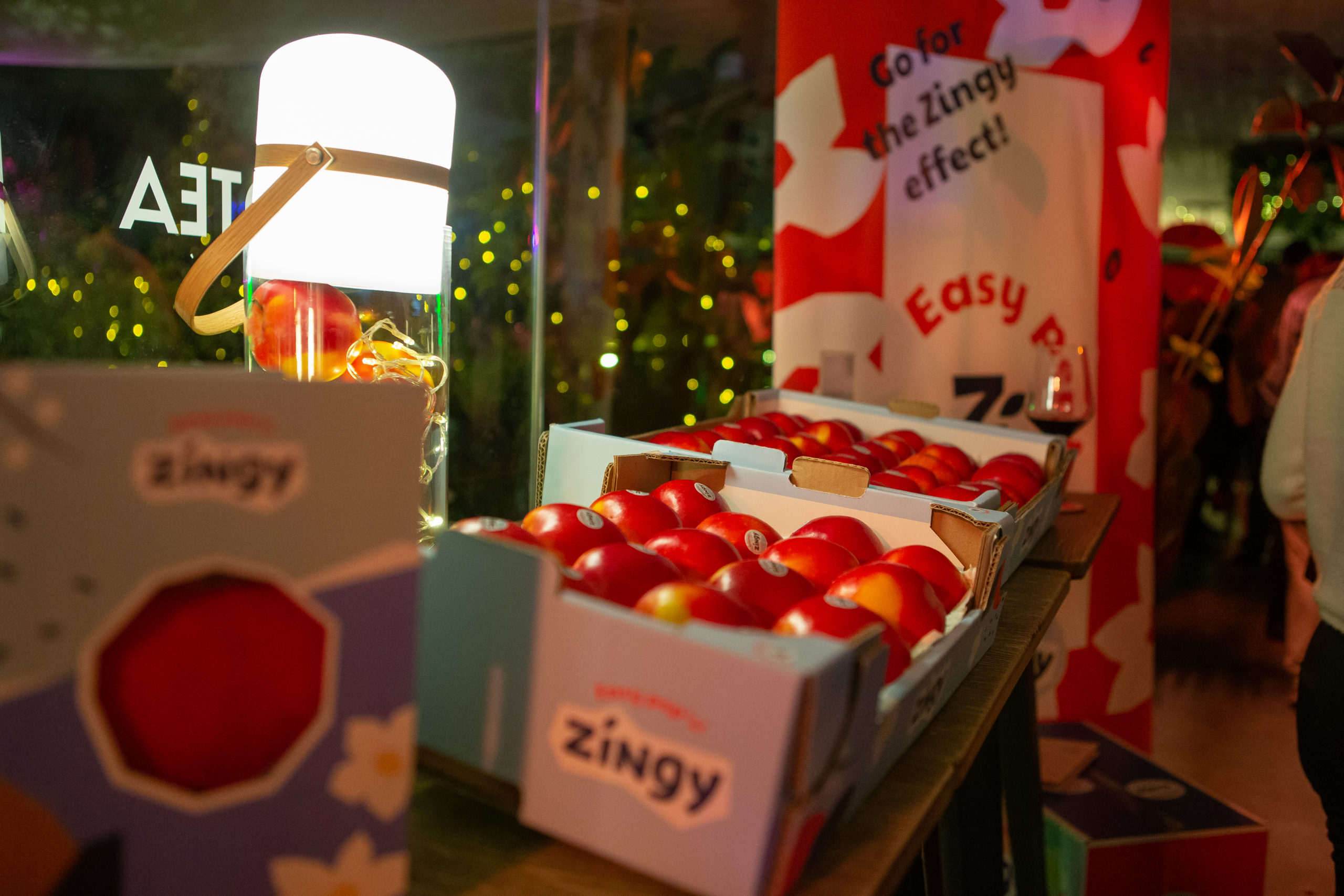 La soirée de lancement a lieu au salon Fruit Attraction de Madrid où sont conviés les clients internationaux et proches collaborateurs d’Innatis. Cette petite dernière complète la gamme de variétés club produites et vendues exclusivement par Innatis. Nous avons souhaité privilégier un lancement intimiste, où nous dévoilons Zingy® à nos clients en exclusivité. Nous leur présenterons la variété ainsi que le logo de Zingy®, son identité visuelle et les outils de communication mis en place. N’hésitez pas à nous contacter ici pour prendre d’ores et déjà rendez-vous avec nos équipes !